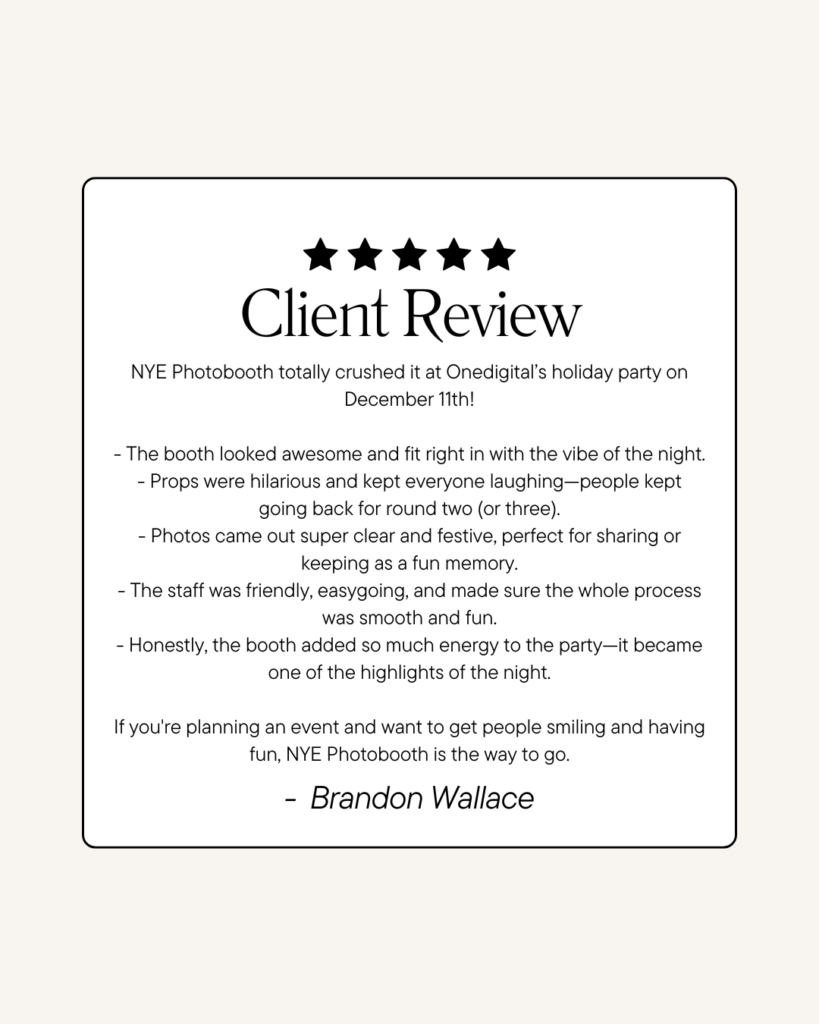 When you book NYE Photo Booth, you’re getting more than a photo op, you’re getting an elevated, stress-free experience that leaves a lasting impression.