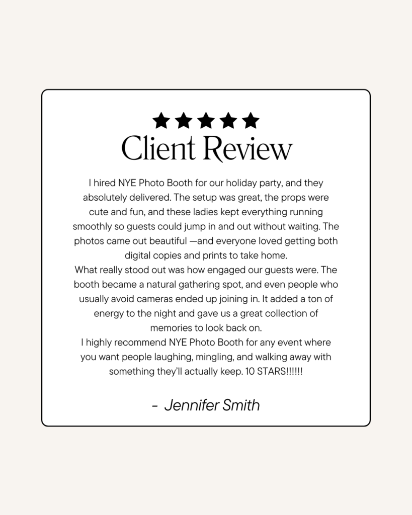 As wives, moms, and best friends, we’ve always loved creating meaningful moments. Launching NYE Photo Booth was a natural fit, blending our passion for events with our love of capturing unforgettable memories.